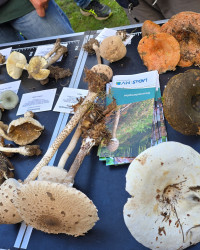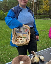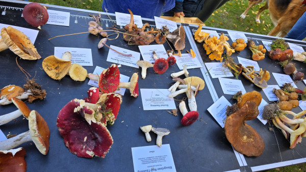Treffpunkt war der Pavillon auf em Festplatz in Sandhof, wo bereits ein großer Tisch voller Pilze bereitstand und den Gästen einen ersten Einblick in die Vielfalt der Pilzwelt bot. Nach der Begrüßung durch Katharina Donath und Lothar Strelow starteten die Sammler ihre Tour in den Wald rund um Sandhof. ..."Ziel der Wanderung ist nicht nur das Sammeln bekannter Pilze, sondern auch das Kennenlernen neuer, ebenfalls wohlschmeckender Arten." erklärt Lothar Strelow. "Wichtig für die anschließende Bestimmung ist, dass die Pilze vollständig mitgebracht werden - mit Stiel, Strumpf oder Knolle." ...so der Pilzexperte weiter.