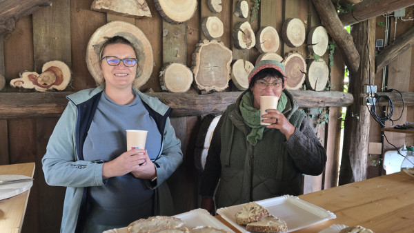 Nach rund zwei Stunden traf die Gruppe wieder am Pavillon ein, wo der Heimatverein schon eine kleine Stärkung bereithielt. Es wurden Kaffee, Kuchen sowie Schmalz- und Steinpilzbutter serviert.