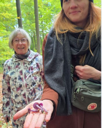 Treffpunkt war der Pavillon auf em Festplatz in Sandhof, wo bereits ein großer Tisch voller Pilze bereitstand und den Gästen einen ersten Einblick in die Vielfalt der Pilzwelt bot. Nach der Begrüßung durch Katharina Donath und Lothar Strelow starteten die Sammler ihre Tour in den Wald rund um Sandhof. ..."Ziel der Wanderung ist nicht nur das Sammeln bekannter Pilze, sondern auch das Kennenlernen neuer, ebenfalls wohlschmeckender Arten." erklärt Lothar Strelow. "Wichtig für die anschließende Bestimmung ist, dass die Pilze vollständig mitgebracht werden - mit Stiel, Strumpf oder Knolle." ...so der Pilzexperte weiter.